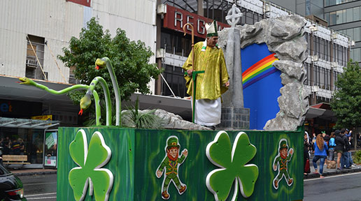 Auckland is perennially distinguished by holding the first St. Patrick’s Day party, since midnight on March 17th strikes New Zealand’s largest city before anywhere else. It also holds the distinction of being the farthest celebration from Ireland, being geographically located at the diametric opposite end of the world, a staggering 11,290 miles away from Dublin. Each year Auckland’s iconic 1,076 ft Sky Tower is illuminated with the Irish Tricolor for the day.